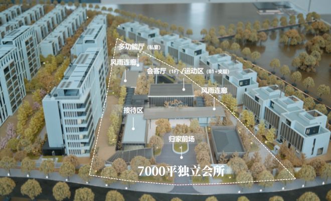 第二,来自结构层变化,区别普通会所是直接建造在建筑楼栋之下,再做下沉式处理,会所四至都被高层建筑遮挡