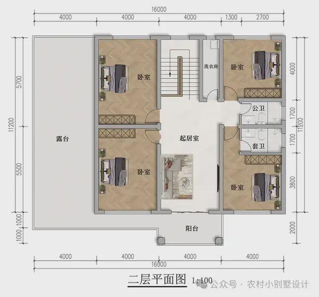 二层旨在创造更为舒适的居住环境,四个角落均设计了贴心住房,每一位家人都有独属于自己的隐私空间。